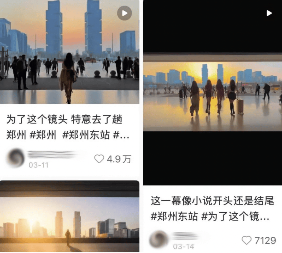 比如前段时间爆火的A市霸总打卡机位,视频里西装革履的顾总们向前走出大门,映入眼帘的是自家十几位数的产业,实际是郑州东站西广场的大门;