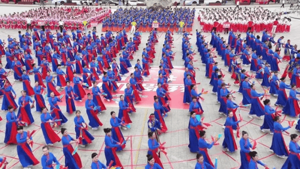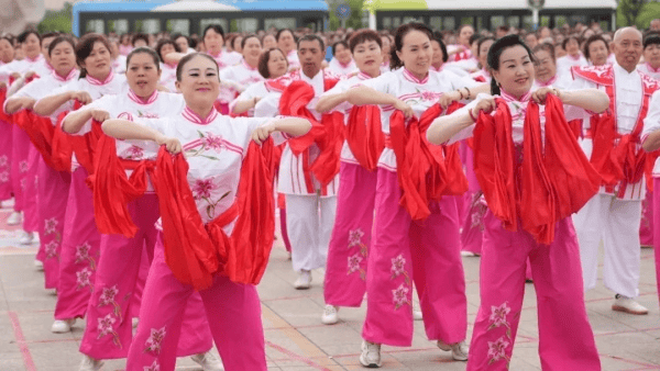 6月6日,“丝路山水同根同心 壮美巴州同梦同行”新疆巴音郭楞蒙古自治州千人广场秀活动在库尔勒鸿雁广场盛装启幕。1300余名群众用精彩绝伦的表演,呈现了一场充满文化魅力的视听盛宴。