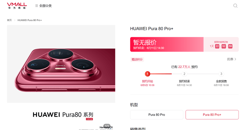 值得注意的是,截至6月9日15时,华为商城官方网站Pura80系列已有22.7万人预约。