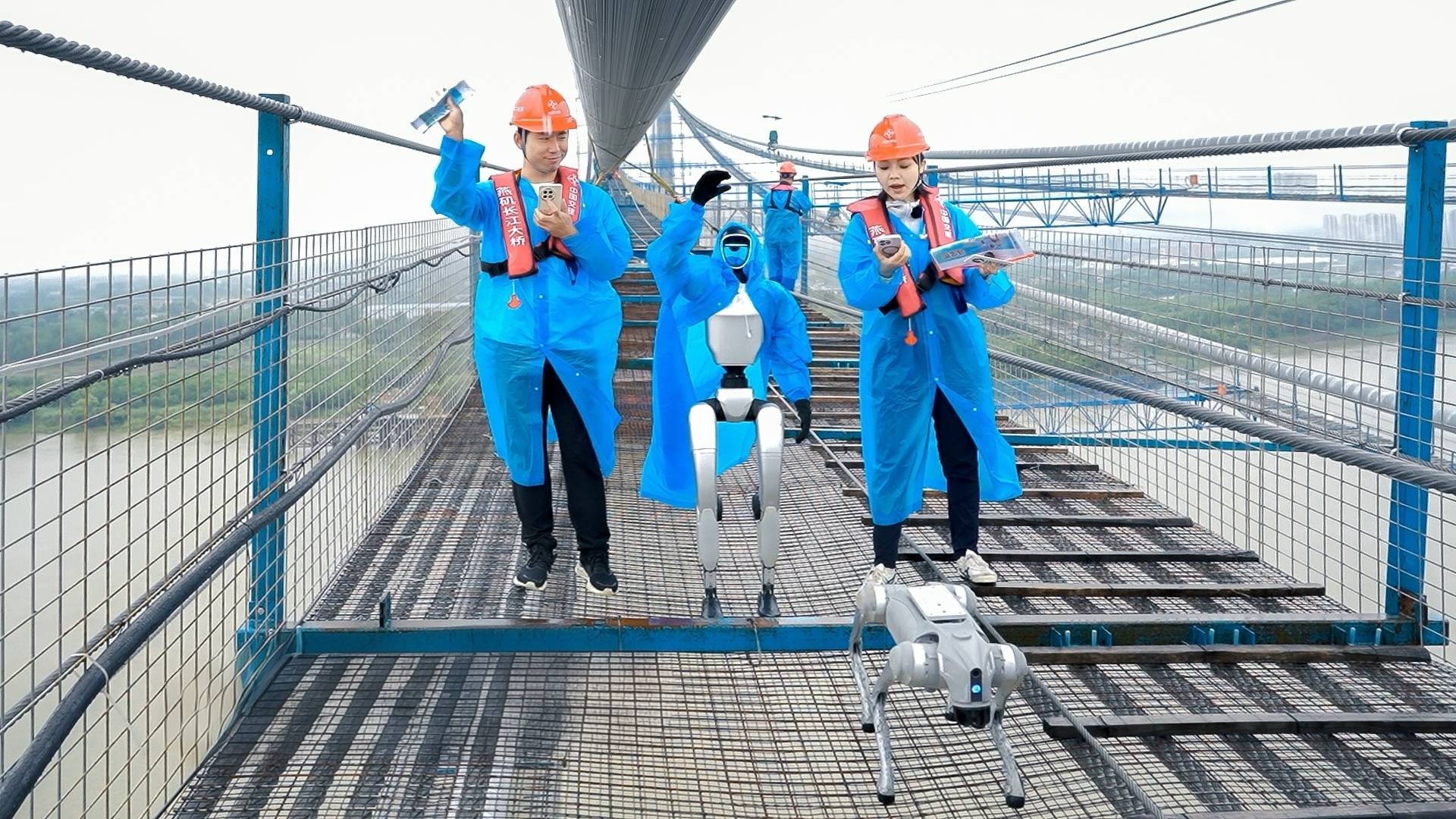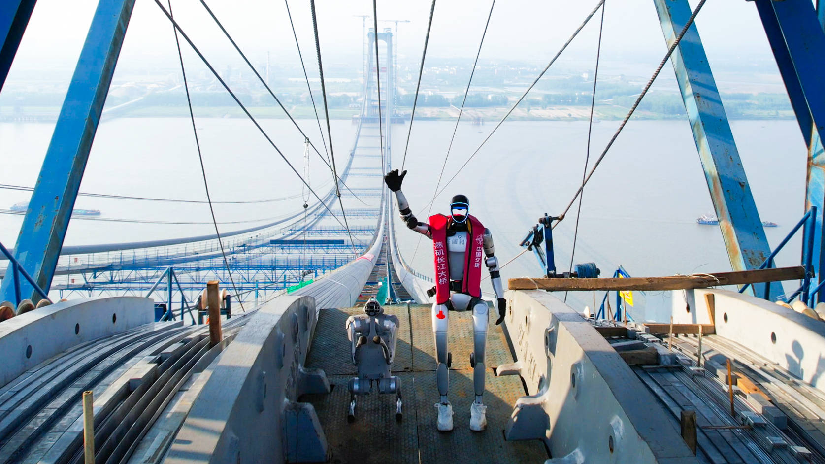 开通/续费会员 抱歉,您观看的视频加载失败 请检查网络连接后重试,有话要说?请点击 我要反馈>> 正在切换清晰度... 播放 按esc可退出全屏模式 00:00 00:00 01:02 广告 只看TA 高清 倍速 剧集 字幕 下拉浏览更多 5X进行中 炫彩HDRVIP尊享HDR视觉盛宴 超清 720P 高清 540P 2.0x 1.5x 1.25x 1.0x 0.8x 50 哎呀,什么都没识别到 反馈 循环播放 跳过片头片尾 画面色彩调整 AI明星识别 视频截取 跳过片头片尾 是 | 否 色彩调整 亮度 标准 饱和度 100 对比度 100 恢复默认设置 关闭 复制全部log两个主塔位居长江两岸,跨越1860米,最高点184米,相当于61层楼高;一条猫道3公里,四条猫道总长达到了12公里,相当于绕着操场跑30圈……6月8日,国产人形机器人攀上湖北燕矶长江大桥,在横跨长江的猫道上冒着风雨阔步前行,中国机器狗跨越障碍稳健迈步,与超级工程遥相呼应,一同见证中国科技与大国基建的实力双秀。