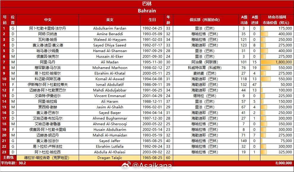 2026年美加墨世界杯亚洲区预选赛 中国vs巴林 23人大名单(附号码)