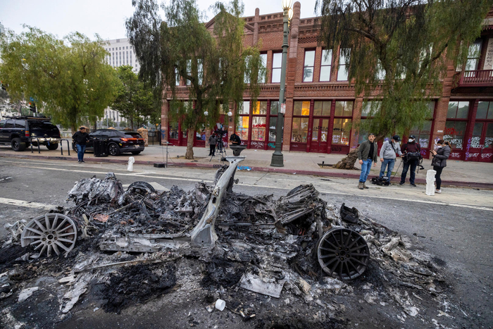 在骚乱事件中,故意破坏和焚烧过路的汽车已经屡见不鲜,但有报道称,Waymo汽车似乎成了本次洛杉矶冲突中“新冒出的一种象征物”。在洛杉矶市中心至少有6辆Waymo车辆被毁,其中一些车身被写满泄愤的口号和标语,车窗被砸碎。由于Waymo是无人驾驶的网上预约出租车服务,美媒怀疑有人故意通过手机程序下单,把车辆叫到指定地点再动手作案。不过上述猜测尚未得到Waymo官方的证实。