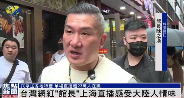 台湾网红“馆长”陈之汉11日在上海直播,他在接受凤凰卫视采访时表示,感受到上海的温暖和人情味。