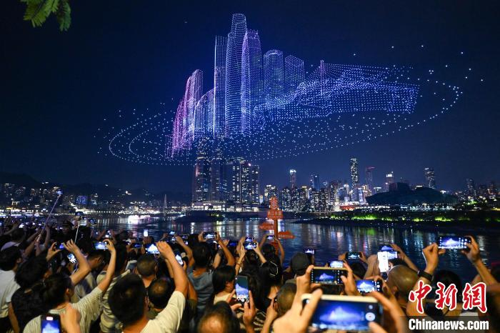 6月17日晚,“魅力重庆”无人机灯光秀正在上演。中新社记者 何蓬磊 摄为此次表演提供技术支持的深圳大漠大智控技术有限公司副总经理覃海群告诉中新社记者,中国企业已与多家外国企业展开技术、创意合作,在欧洲、美国、澳大利亚、韩国、越南、阿联酋等地完成无人机灯光秀。作为行业人士,她亦期待以此次挑战吉尼斯世界纪录为契机,解锁无人机灯光秀在大型活动、文旅、空中智媒、城市亮化工程等方面的更多新奇玩法,助力低空经济发展。(完)