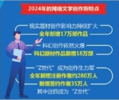 ——“Z世代”(2000年后出生的人)成为创作生力军。全年新增注册作者约280万人,新增签约作者35万人,其中近四成为“Z世代”。2024年有82位网络作家成为中国作协会员,最年轻的仅25岁,为行业注入新鲜血液和创新活力。