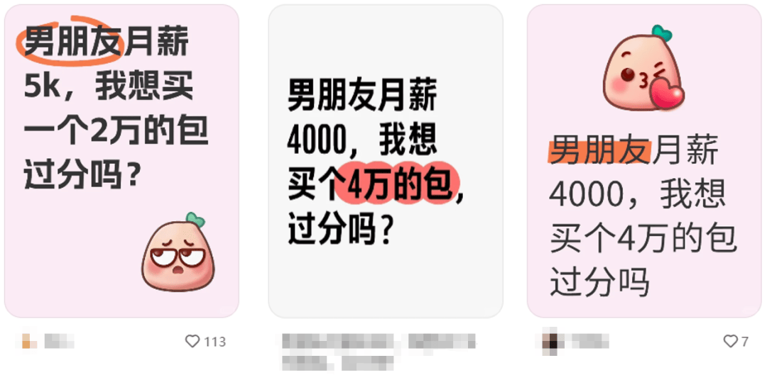 月薪5000不够用,就改成4000,3万的包不够夸张,就变成4万,类似的帖子比比皆是,格式整齐划一,文案极度雷同,像生产线上被统一加工出来的工业罐头。