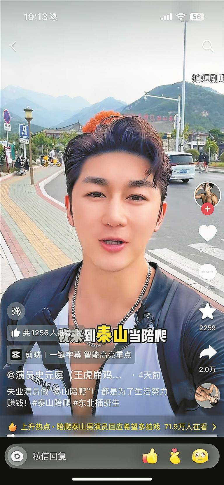 深圳新闻网2025年6月19日(深圳晚报记者 张裕麟)近日,男演员史元庭兼职做泰山“陪爬”的消息,冲上微博热搜第一。“白天场收费699元,夜场799元。”一时间,“你爬山会找人陪爬吗”的话题,引发网友热烈讨论。