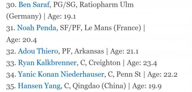 直播吧6月21日讯 距离2025年NBA选秀大会还有5天,ESPN记者Jonathan Givony撰文,在选秀大会前最后一次为新秀进行模拟排名。 其中,来自中国的中锋杨瀚森排在次轮35顺位(属于费城76人)。