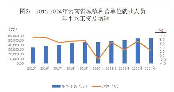 2024年,云南省城镇私营单位就业人员年平均工资为55317元,比上年增加1373元,名义增长2.5%,扣除价格因素实际增长2.4%。