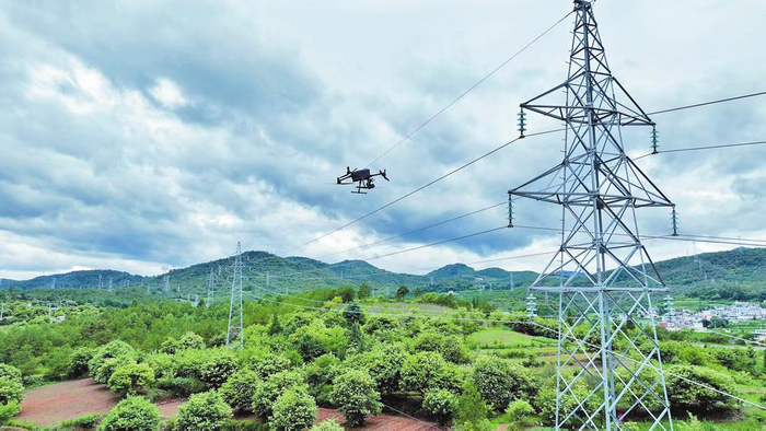 南方电网云南昆明供电局利用中型无人机开展线路隐患排查。近日,一架垂直起降固定翼无人机从禄劝彝族苗族自治县中屏镇35千伏富老井变电站内的机巢起飞,沿着220千伏赛中线进行三维激光建模工作,并将实时画面传输回管控平台。这是云南电网首次部署应用垂直起降固定翼无人机机巢,节省人工操控时间近80%,输电线路巡检效率提高近5倍。