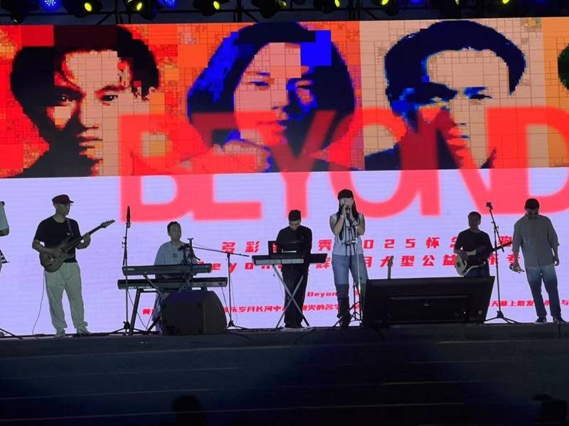 “多彩星光秀”现场人潮涌动,铁风筝乐队、海绵乐队、鬼方乐队等多支优秀乐队倾情演绎了Beyond乐队经典歌曲,包括《海阔天空》《光辉岁月》《喜欢你》《真的爱你》等脍炙人口的金曲。动人旋律在歌迷心间久久回荡,不少市民主动登台,与乐队共同唱响青春记忆。“我们80后基本都是Beyond乐队的粉丝,今天能在现场上台唱年轻时偶像的歌,特别激动!”市民席天波难掩兴奋地说。