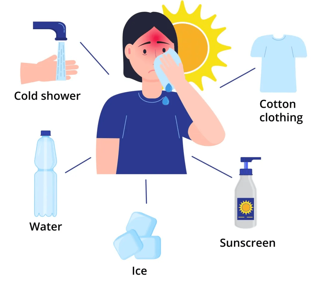 请老人和孩子等重点防护人群尽量减少高温时段外出;户外工作者要定时休息,合理安排工作,随身携带防暑用品,谨防中暑。如果出现头晕、头痛、乏力、口渴、多汗、心悸、面色潮红、皮肤灼热、体温略高于正常等中暑先兆症状,应及时寻求帮助,尽快转移到阴凉处休息,并保持通风,补充水和电解质,如无缓解或症状严重应立即就医。