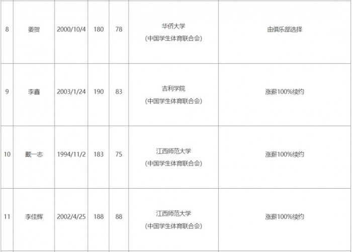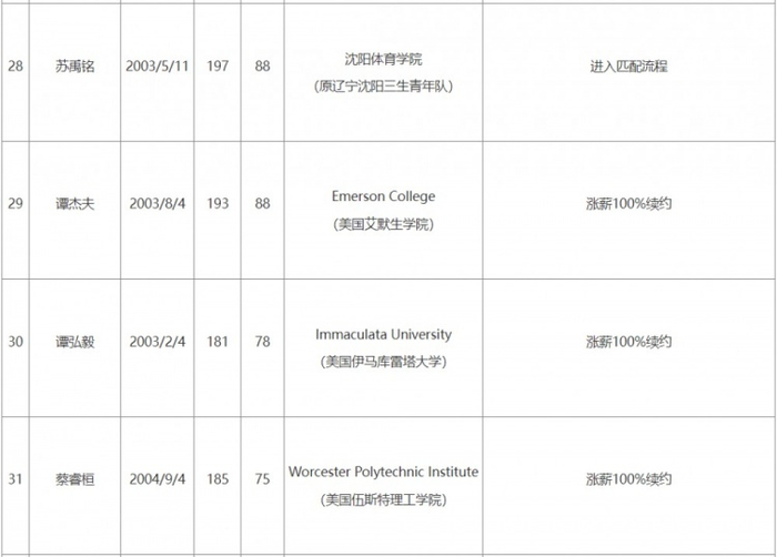 注:新秀和球队签新秀合同时,会在合同中约定合同到期后的续约方式,有三个选项,第一个是涨薪100%续约,第二个是进入匹配流程,第三个是由球队在前两种方式中决定一个。