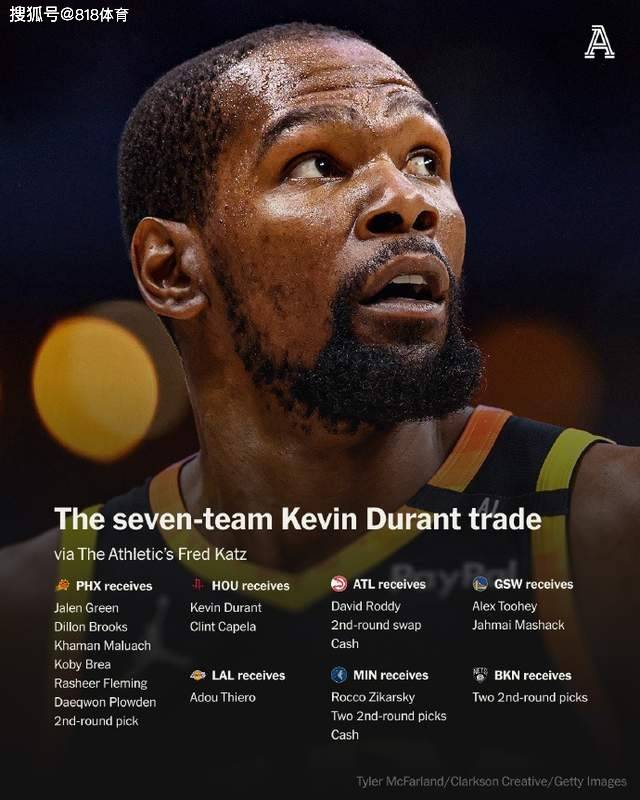7月7日消息,7月7日,休斯敦火箭官方宣布,通过7队参与交易得到了杜兰特、卡佩拉两名球员。而杜兰特交易也创造了NBA历史上参与球队最多的纪录,不愧是联盟“小王”!