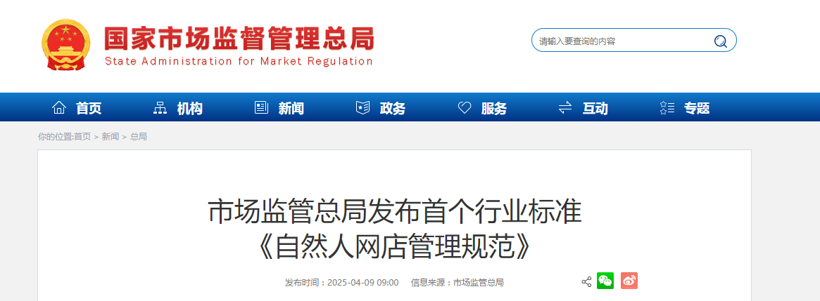 近日,市场监管总局发布首个市场监管行业标准——《自然人网店管理规范》(以下简称《管理规范》),推动构建网络交易平台经营者对自然人网店“统一入驻标准、统一运营规则、统一退出机制、统一数据报送标准”的“四个统一”管理框架,提高网络交易监管科学化、规范化水平。