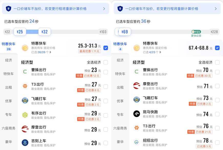 但快车跟特惠,你能感觉出来啥差别嘛?