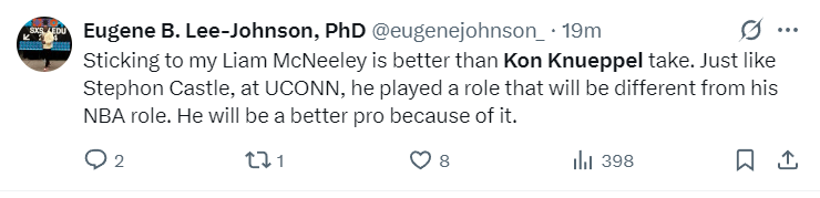 美媒:我一直坚持认为麦克尼利比克努佩尔强,他们在大学时期扮演的角色就截然不同,克努佩尔是一个投手,而麦克尼利能自主创造得分。