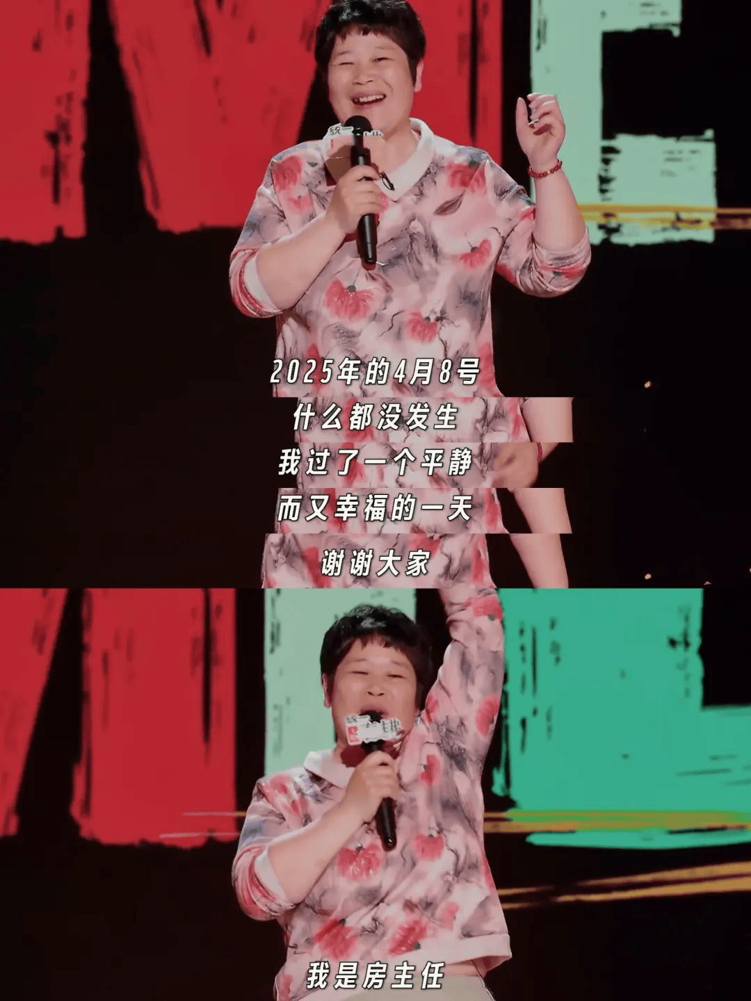 在度过了30年这样的日子后,房主任的人生迎来转折——2023年4月8日:她签约成为脱口秀演员;2024年4月8日,她带两个女儿净身出户,拿到离婚证;2025年4月8日,“什么都没发生,我过了平静而幸福的一天。