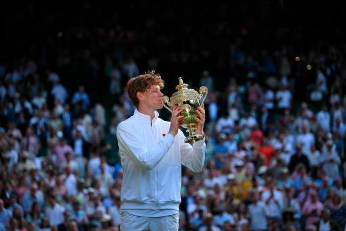 7月14日凌晨,温网男单决赛结束争夺。世界第1辛纳让一追三逆转世界第2阿尔卡拉斯,成功拿下了个人首座温网冠军和第4座大满贯冠军头衔。凭借着在今年温网夺冠的表现,辛纳创造了多项纪录。