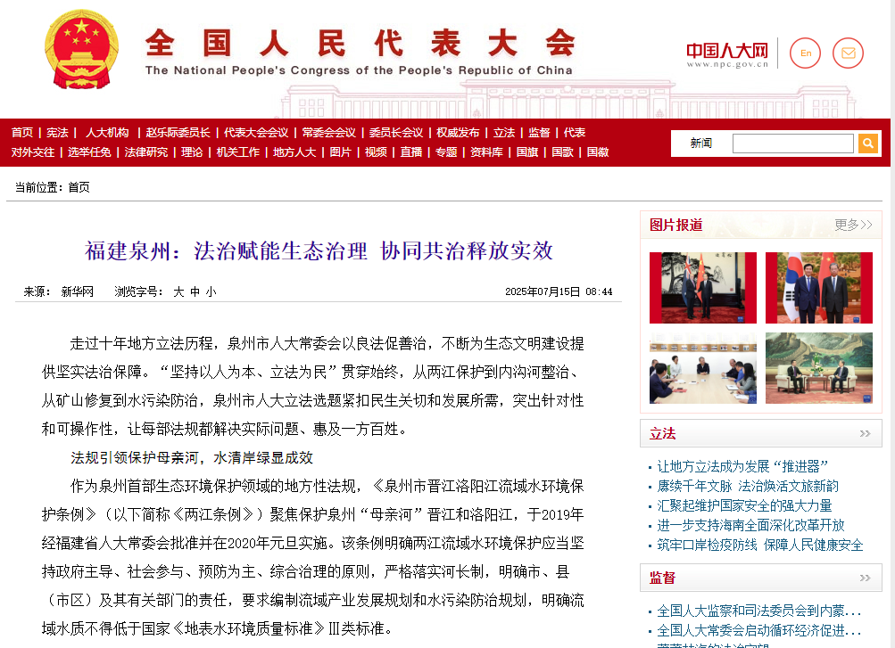 同一天,全国人大官网接连刊发两篇文章,点赞泉州立法经验做法。