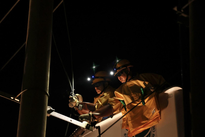 ▲7月16日晚11点,国网眉山市彭山供电公司工作人员开展带电作业 唐靖舒 摄迎峰度夏期间负荷强劲攀升的背后,是电网建设提供的坚实支撑。7月前,国网眉山供电按期投运6项保供重点工程,其中眉山西500千伏输变电工程新增变电容量240万千伏安,推动眉山电网最大供电能力从380万千瓦跃升至570万千瓦。