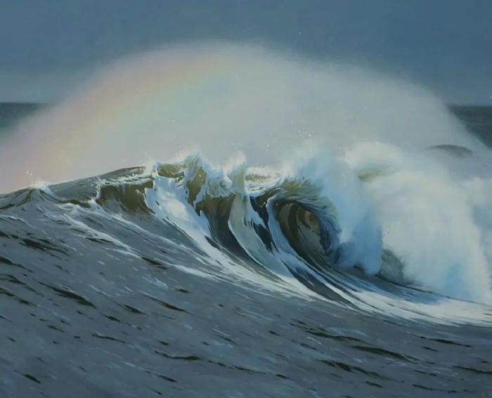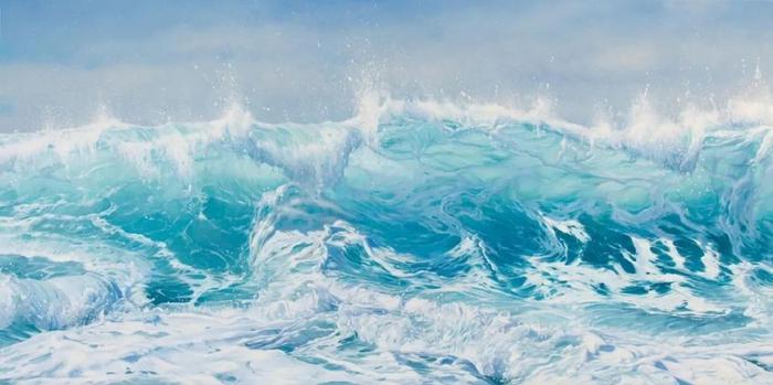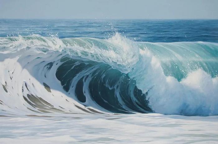 这些精彩的超写实绘画作品,让很多人质疑是高清照片,而非手工绘制的画作。事实上,这些画作带来的独特视觉感受,是照片无法呈现出来的。需要花费大量时间观察大海,研究大海,与大海产生共鸣,才能用画笔绘制出如此富有层次感的海洋画作。