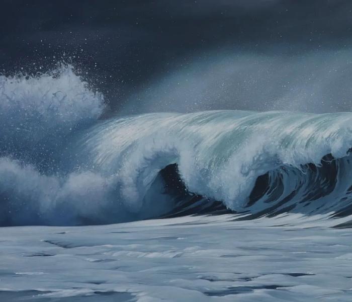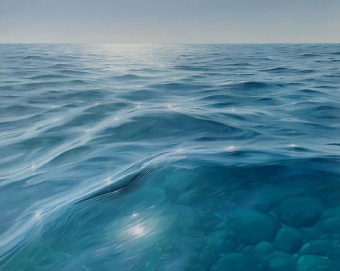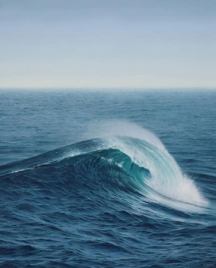 谈到这些描绘海洋的超写实绘画作品,凯瑟琳·伯恩斯说:“我被大海的变化所吸引,无论是平静还是狂野喧嚣的时刻,大海都可以引起我的情绪变化。在创作时,根本无需多余的描绘,只需要描绘大海最真实的一面,捕捉到色彩和光线的微妙变化就足够了。”