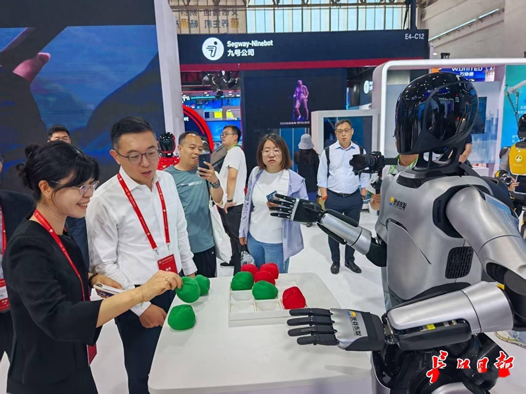 本届链博会上湖北设立人形机器人产业链专题展区,7家武汉企业携带20个人形机器人集体亮相。这是继今年湖北“新春第一会”上10款人形机器人首秀后,湖北在该领域交出的又一份亮眼成绩单——仅仅过了5个月,湖北参展的人形机器人数量翻倍。