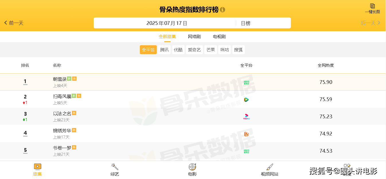 截止发文时间,从“骨朵热度指数排行榜”数据显示可知,当前热播电视剧中,全网热度最高的五部剧分别如下: