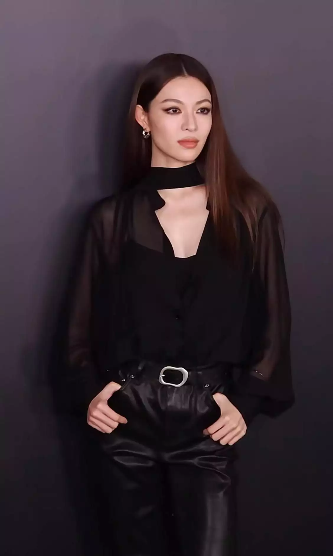 钟楚曦:英气逼人,黑色薄衫搭配皮裤短靴