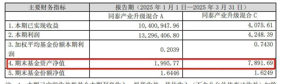 同时,同泰产业升级混合C的基金份额净值1.6187元,基金份额净值增长率为-0.38%,已实现收益-276.89万元,利润-431.26万元。