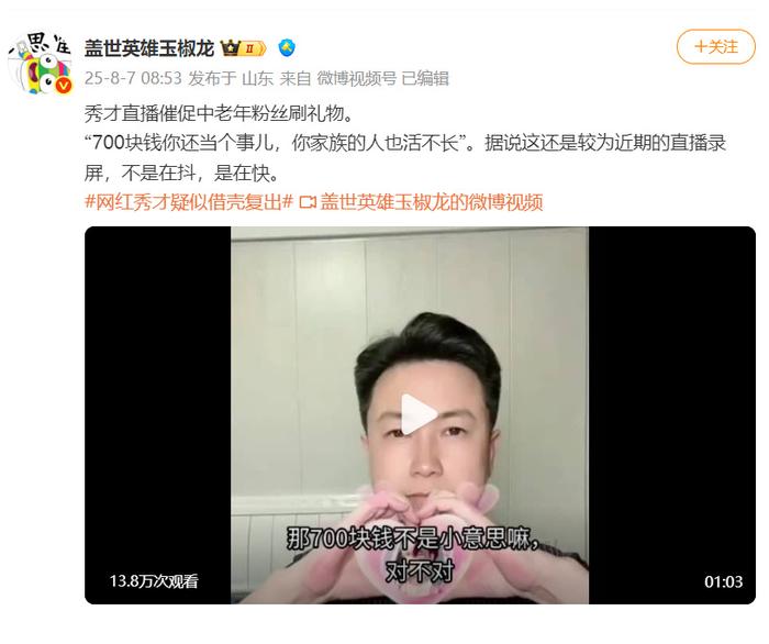网红“秀才”疑似借壳复出!网友:“中老年收割机”重出江湖?