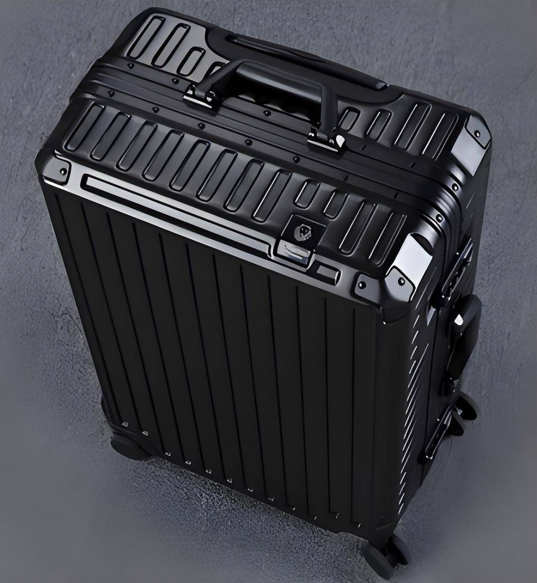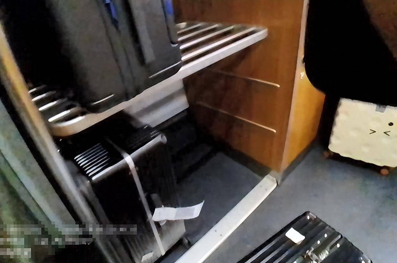 一看,行李柜下层有一个黑色行李箱,外壳是那种金属条纹款,很常见。和姑娘发来的行李箱照片一对比,相似度超过90%。