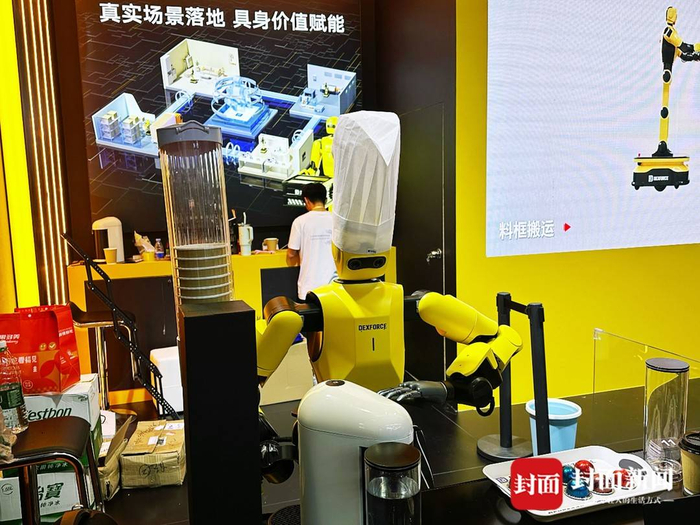 人形机器人正在制作饮料。封面新闻记者戴云 摄工业和信息化部副部长辛国斌强调,中国政府高度重视机器人产业发展。他透露,今年上半年,机器人产业营业收入同比增长27.8%,工业机器人和服务机器人产量,同比分别增长35.6%和25.5%,连续12年位居全球最大工业机器人应用市场。