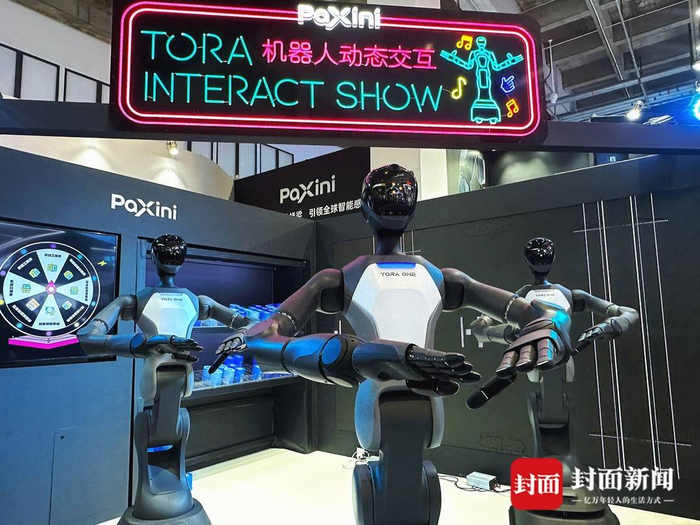 人形机器人正在表演舞蹈。封面新闻记者戴云 摄记者注意到,博览会现场汇聚了多家国内人形机器人创新中心,集中展示了前沿技术成果、创新产品及行业解决方案,包括北京人形机器人创新中心、浙江人形机器人创新中心、四川人形机器人创新中心等。